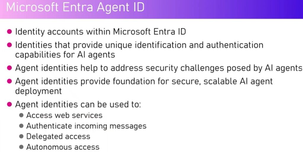 Microsoft Entra Agent ID is designed to provide identity capabilities specifically for AI agents within Microsoft Entra ID. At its core, it introduces identity accounts that allow AI agents to be uniquely identified and authenticated across Microsoft environments.
