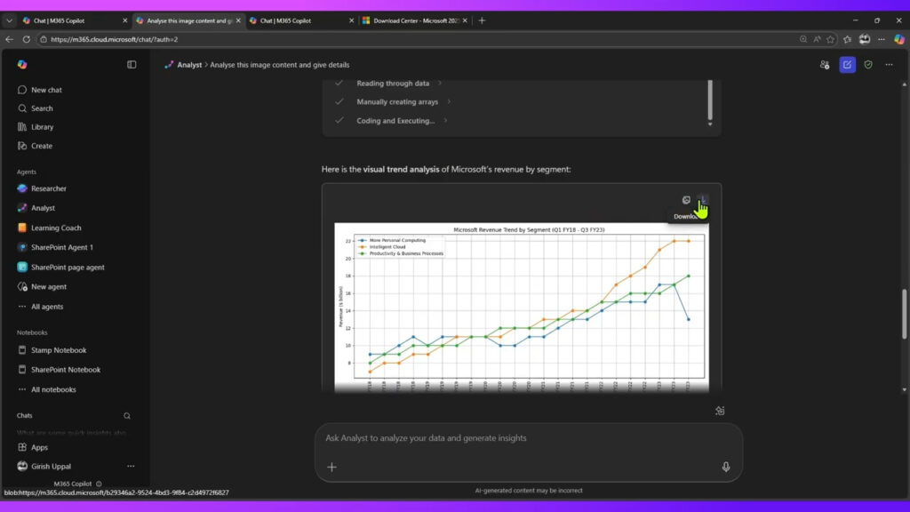 The Analyst Agent in Microsoft 365 Copilot is a powerful built-in analytical assistant that processes structured and unstructured data across multiple formats. By combining automated analysis, real-time Python execution, transparent processing logs, and dynamic visualization capabilities, it enables organizations to extract insights efficiently and make informed strategic decisions.