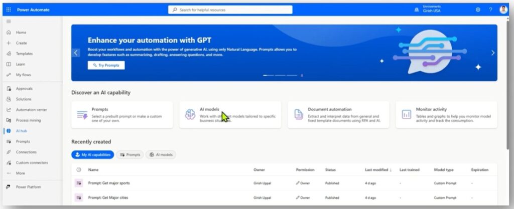 Depending on the environment, configuration steps may vary, but AI Builder functionality is broadly accessible across the platform.